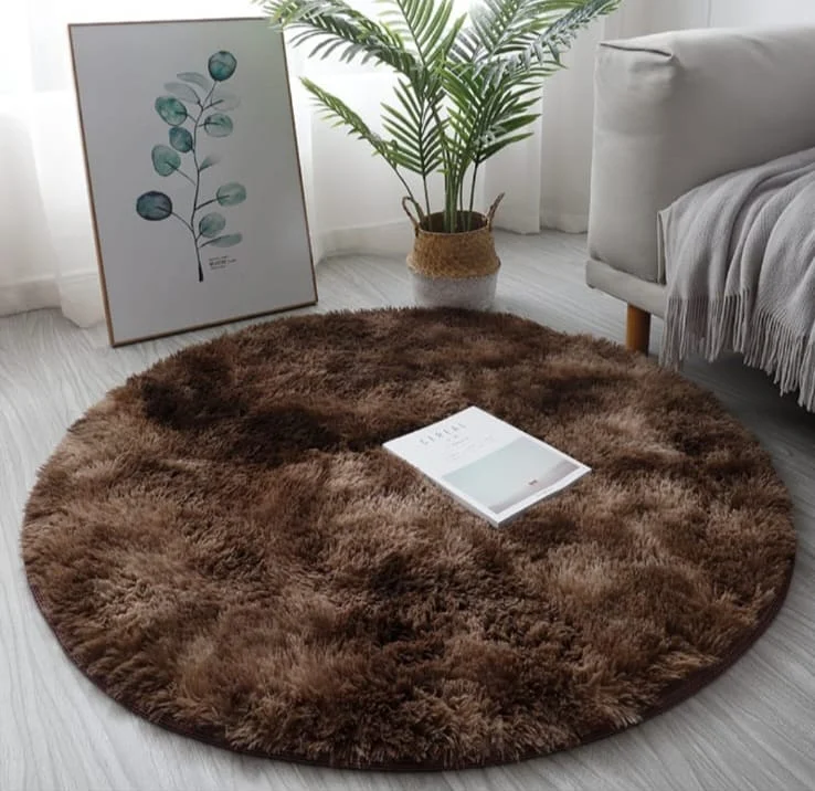 Alfombras Shaggy Peludas Redondas Livianas 150 Cafe Jaspeado