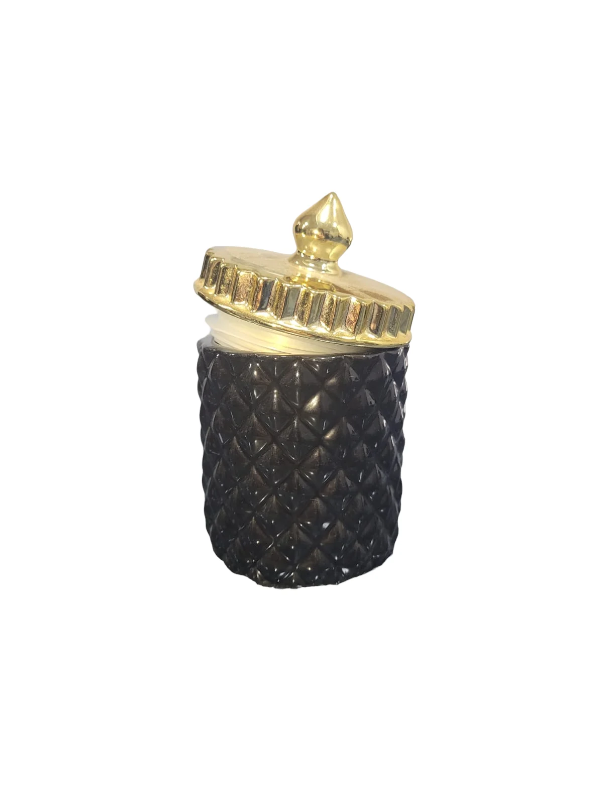 Bombonera de resina negra con tapa dorada, alto 10 cm