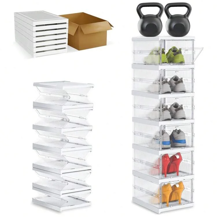 Los contenedores de almacenamiento apilables son transpirables para la circulación del aire para evitar la humedad, con dos opciones de 3 capas y 6 capas, un diseño único de alta perspectiva y zapatos fáciles de encontrar. [Fácil de instalar] Todos pueden montar fácilmente la caja de zapatos, fácil instalación en solo 4 pasos, fácil de montar y uso general de la instalación del plug-in. Los cubos de almacenamiento son apilables, con una estructura emergente, los pestillos incluidos facilitan su apilamiento o enlace, el mejor espacio de almacenamiento disponible. Los contenedores de almacenamiento apilables se pueden utilizar para almacenar ropa, juguetes, artículos de tocador y mucho más, y pueden agregar a la estética de su sala de estar, garaje, dormitorio o armario, una adición perfecta a su dormitorio y armario.