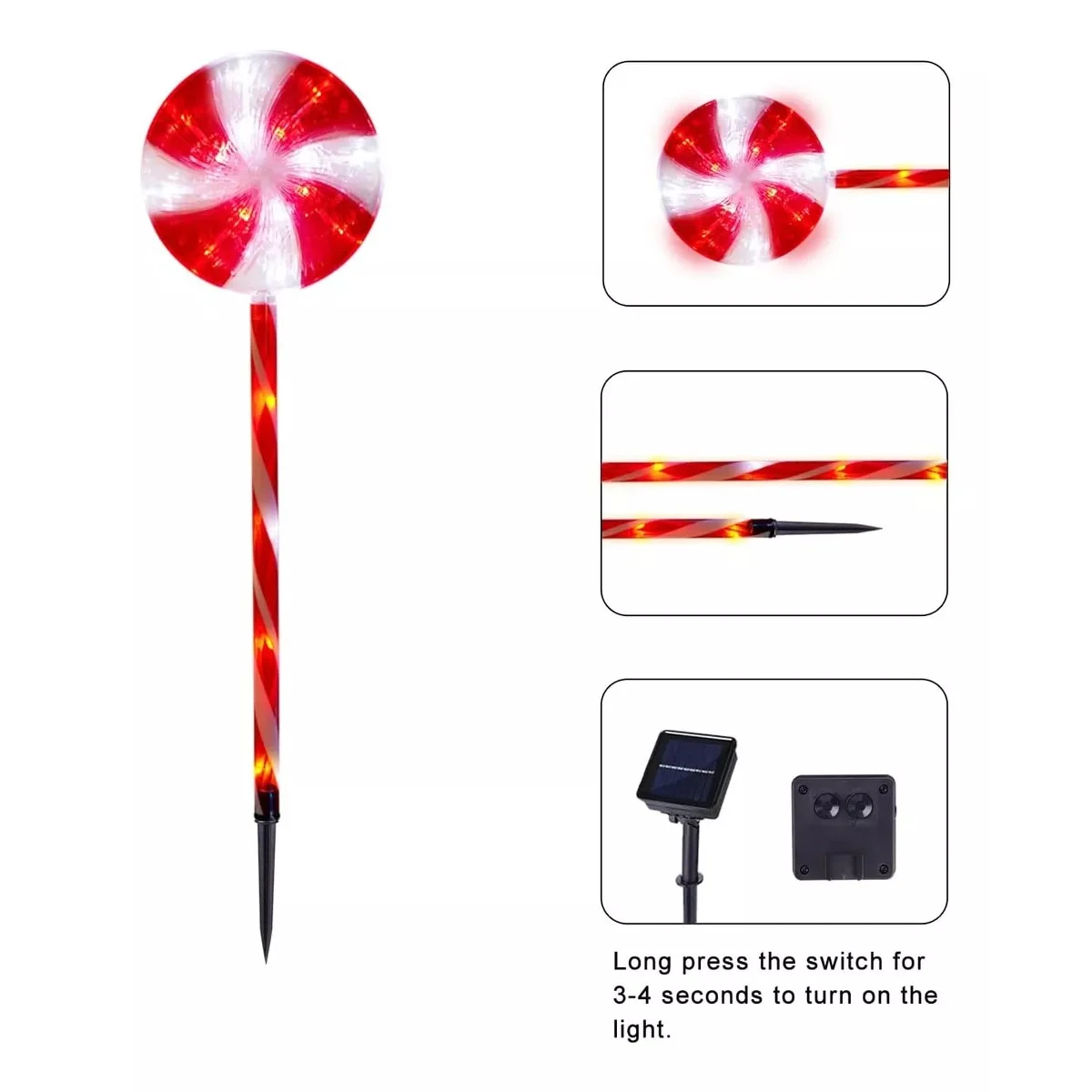 Solar y Auto On/Off: Sensor de luz incorporado, estas luces de marcador de camino de Navidad pueden encenderse automáticamente por la noche y apagarse durante el día.