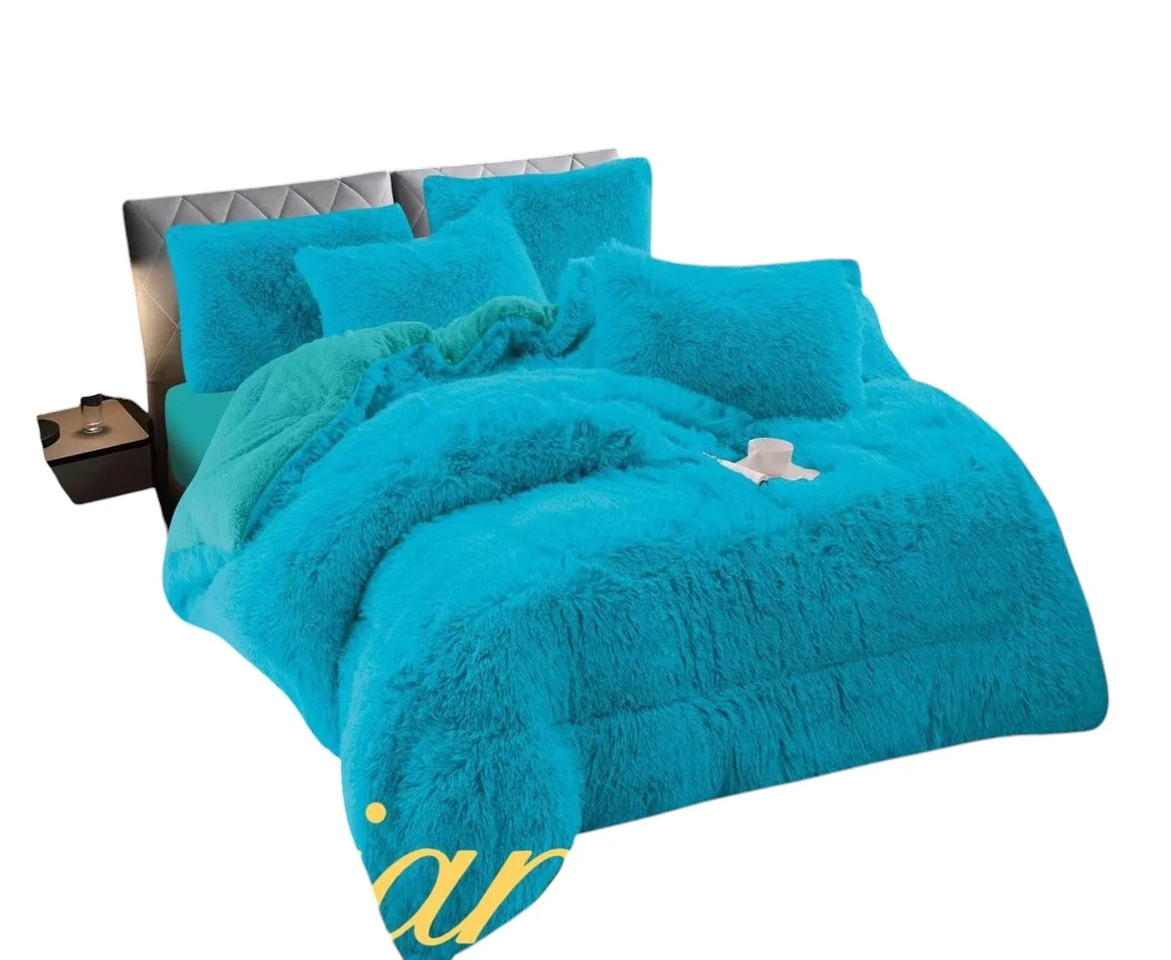 Cobertor de Invierno Peludo Con Chiporro Plaza y Media Color Turquesa
