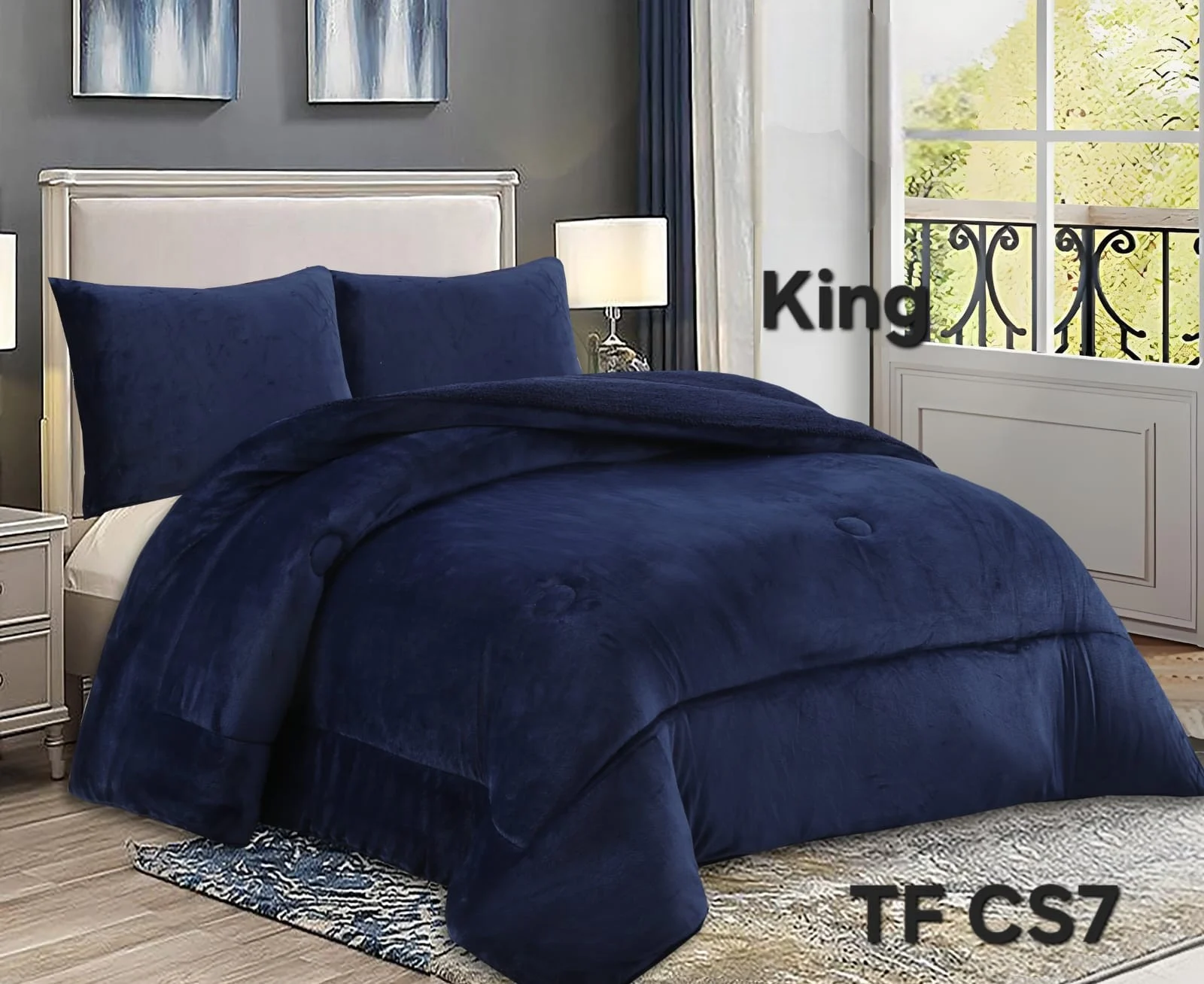 COBERTOR DE INVIERNO PLUSH LISO KING COLOR AZUL