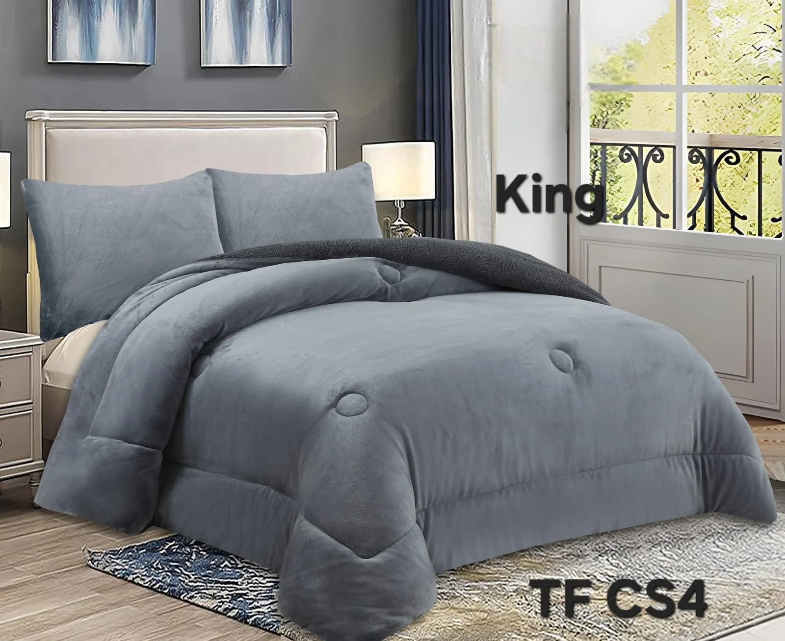 COBERTOR DE INVIERNO PLUSH LISO KING COLOR GRIS