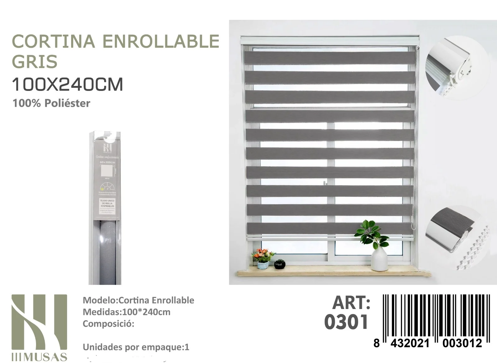 Cortina Roller Duo Lisa 100cm x 240cm Color Gris 0301