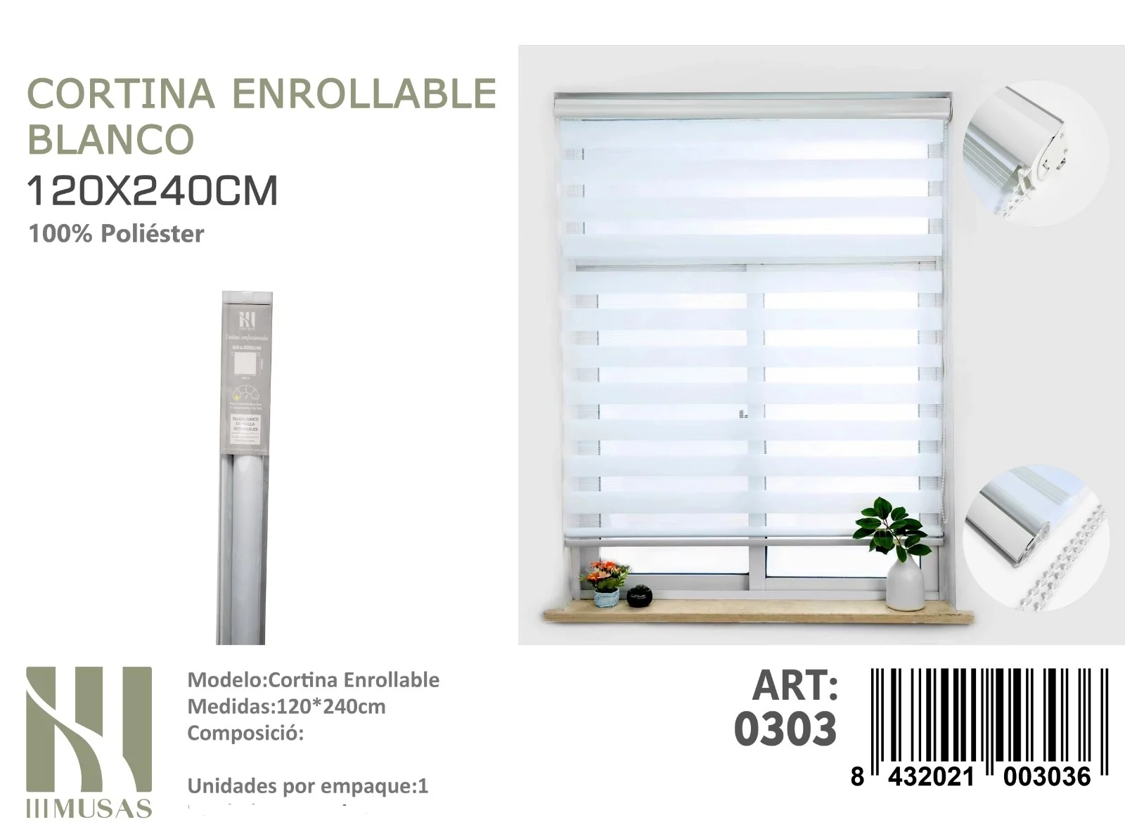 Portada » Tienda » Cortina Roller Duo Lisa 120cm x 240cm Color Blanco 0303