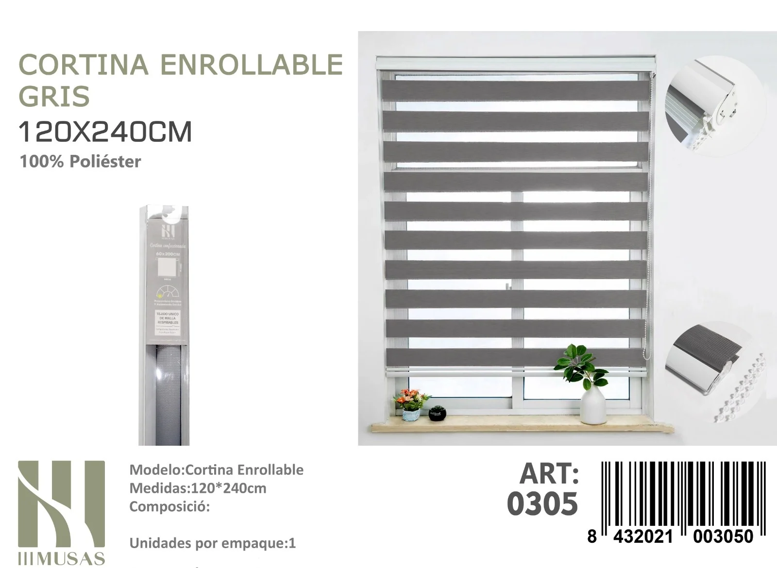 Cortina Roller Duo Lisa 120cm x 240cm Color Gris 0305