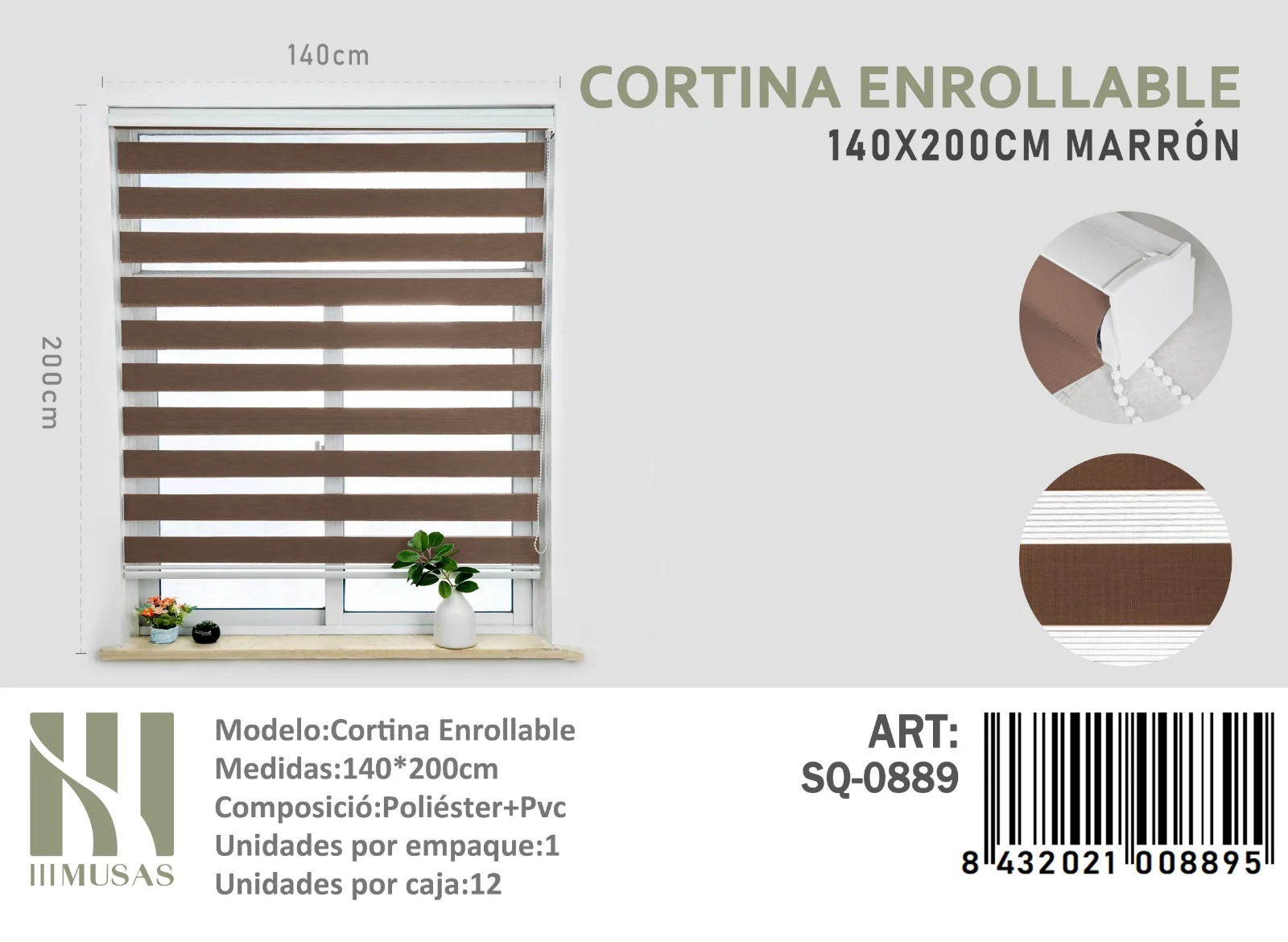 Cortina Roller Duo Lisa 140cm x 200cm Color Cafe SQ-0889