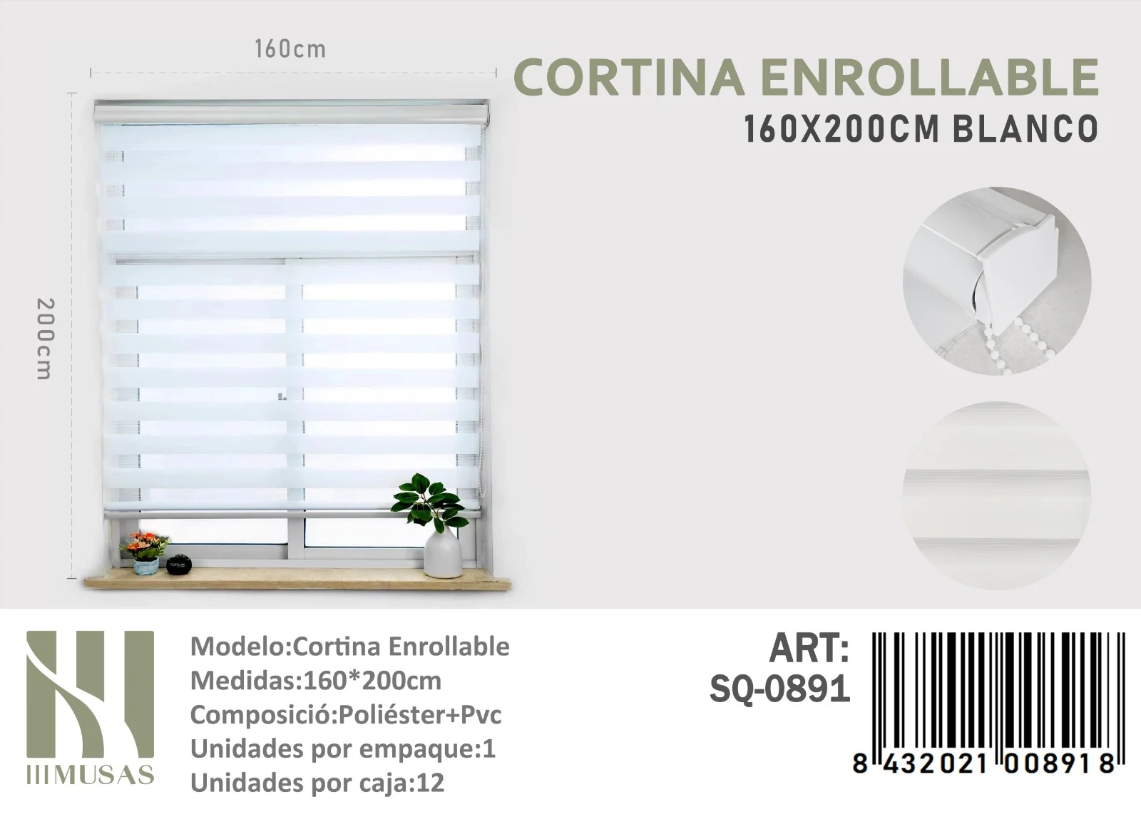 Portada » Tienda » Cortina Roller Duo Lisa 160cm x 200cm Color Blanco SQ-0891