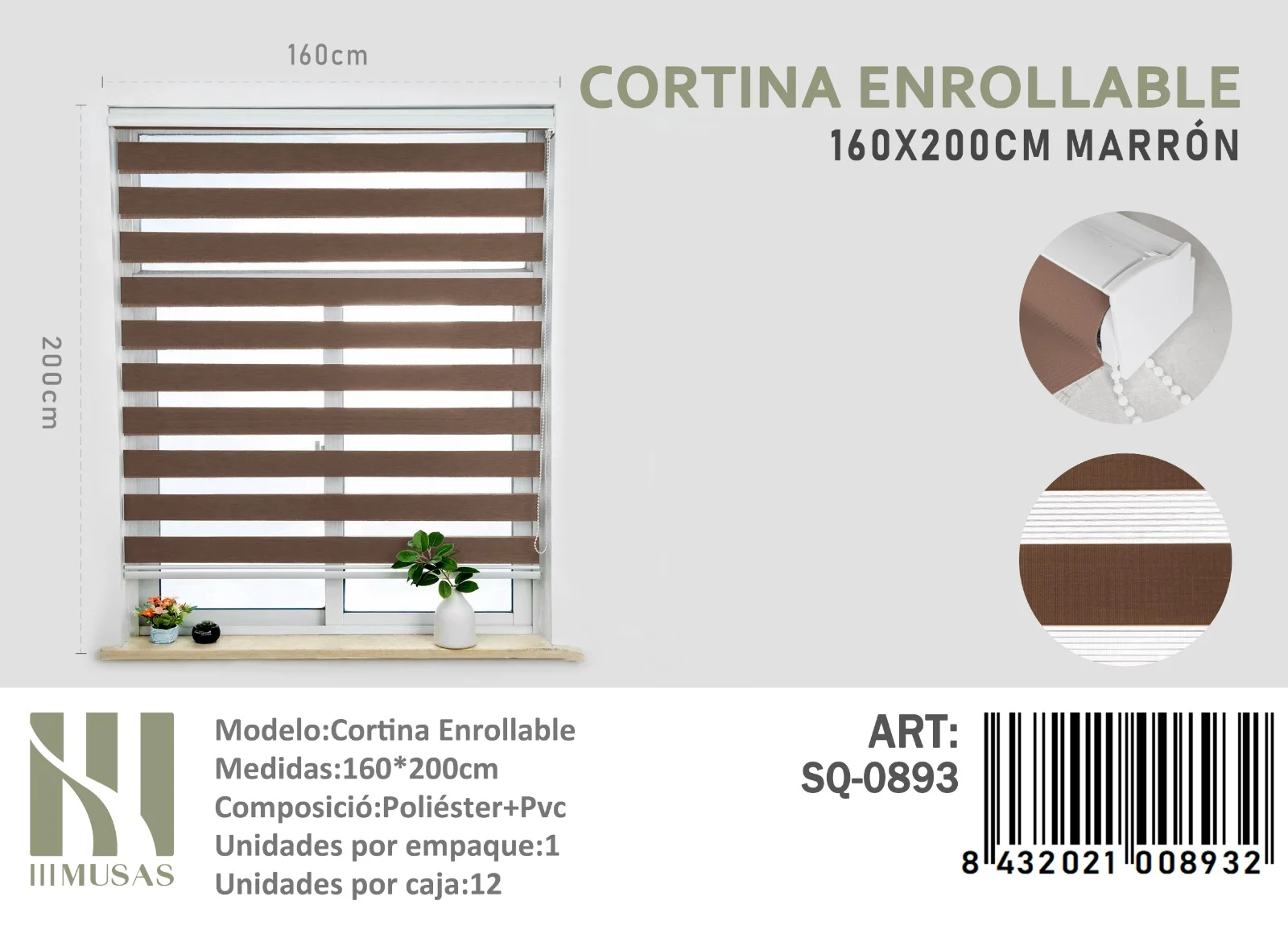 Cortina Roller Duo Lisa 160cm x 200cm Color Cafe SQ-0893
