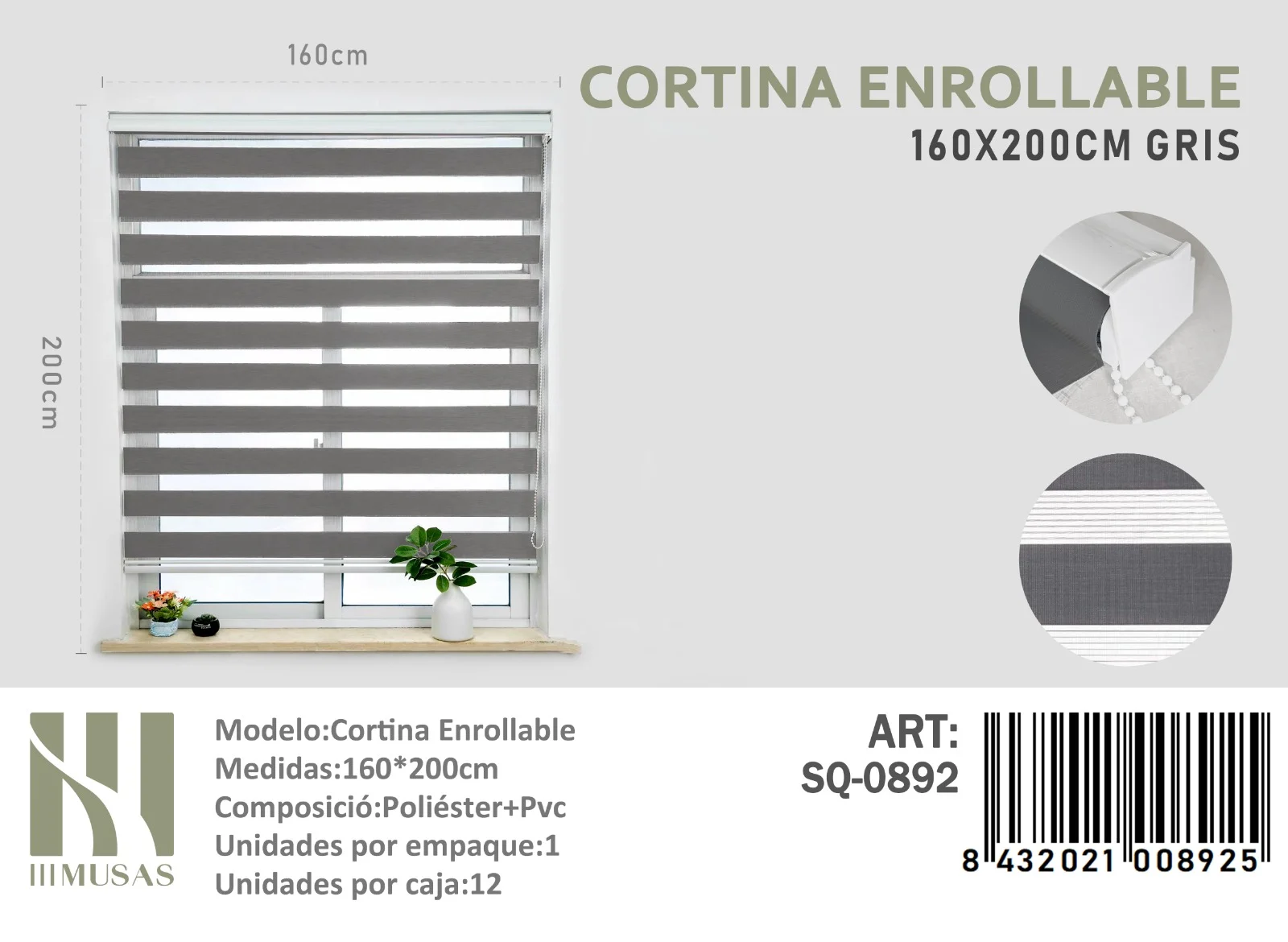 Portada » Tienda » Cortina Roller Duo Lisa 160cm x 200cm Color Gris SQ-0892