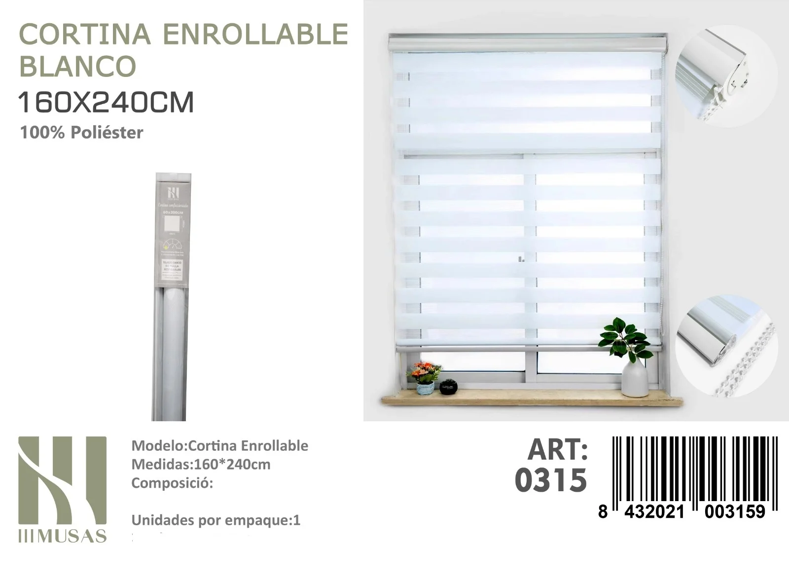 Cortina Roller Duo Lisa 160cm x 240cm Color Blanco 0315