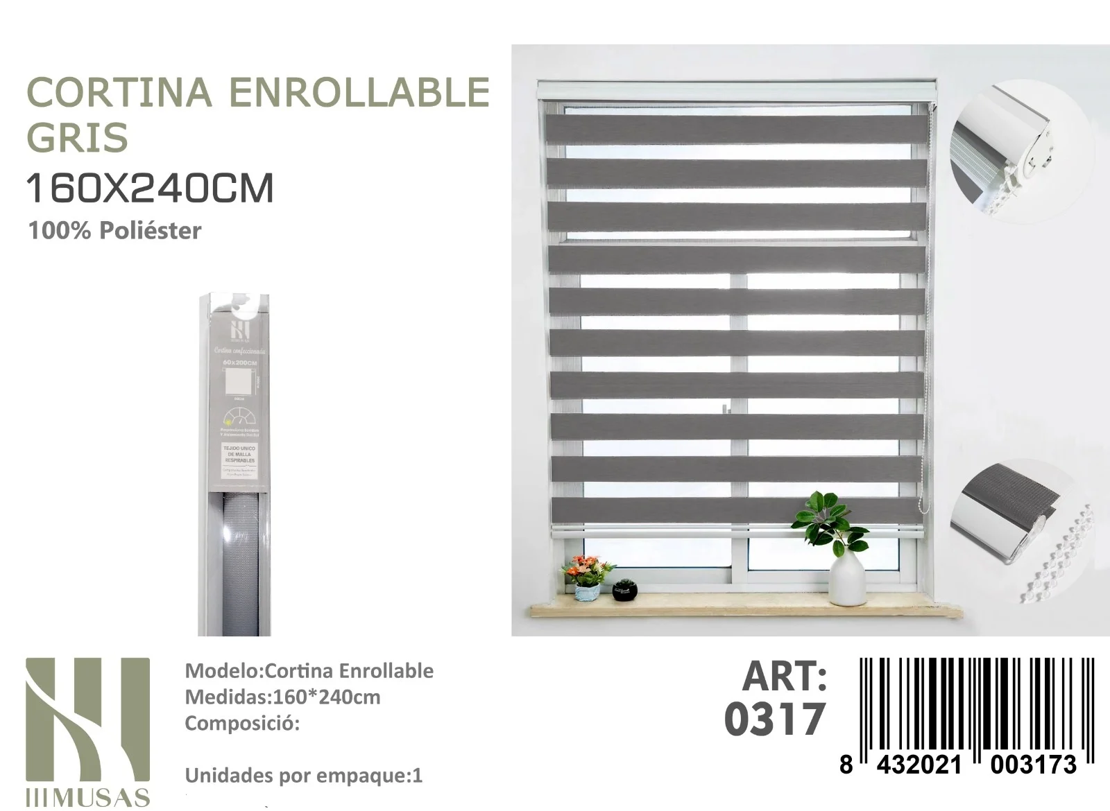 Portada » Tienda » Cortina Roller Duo Lisa 160cm x 240cm Color Gris 0317