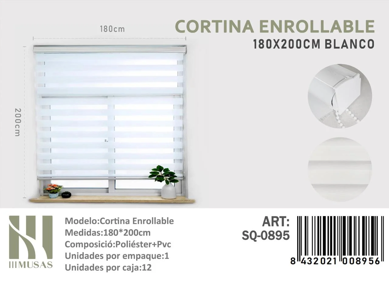 Cortina Roller Duo Lisa 180cm x 200cm Color Blanco SQ-0895