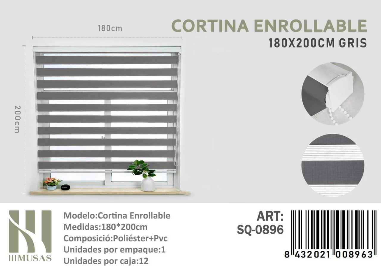 Cortina Roller Duo Lisa 180cm x 200cm Color Gris SQ-0896