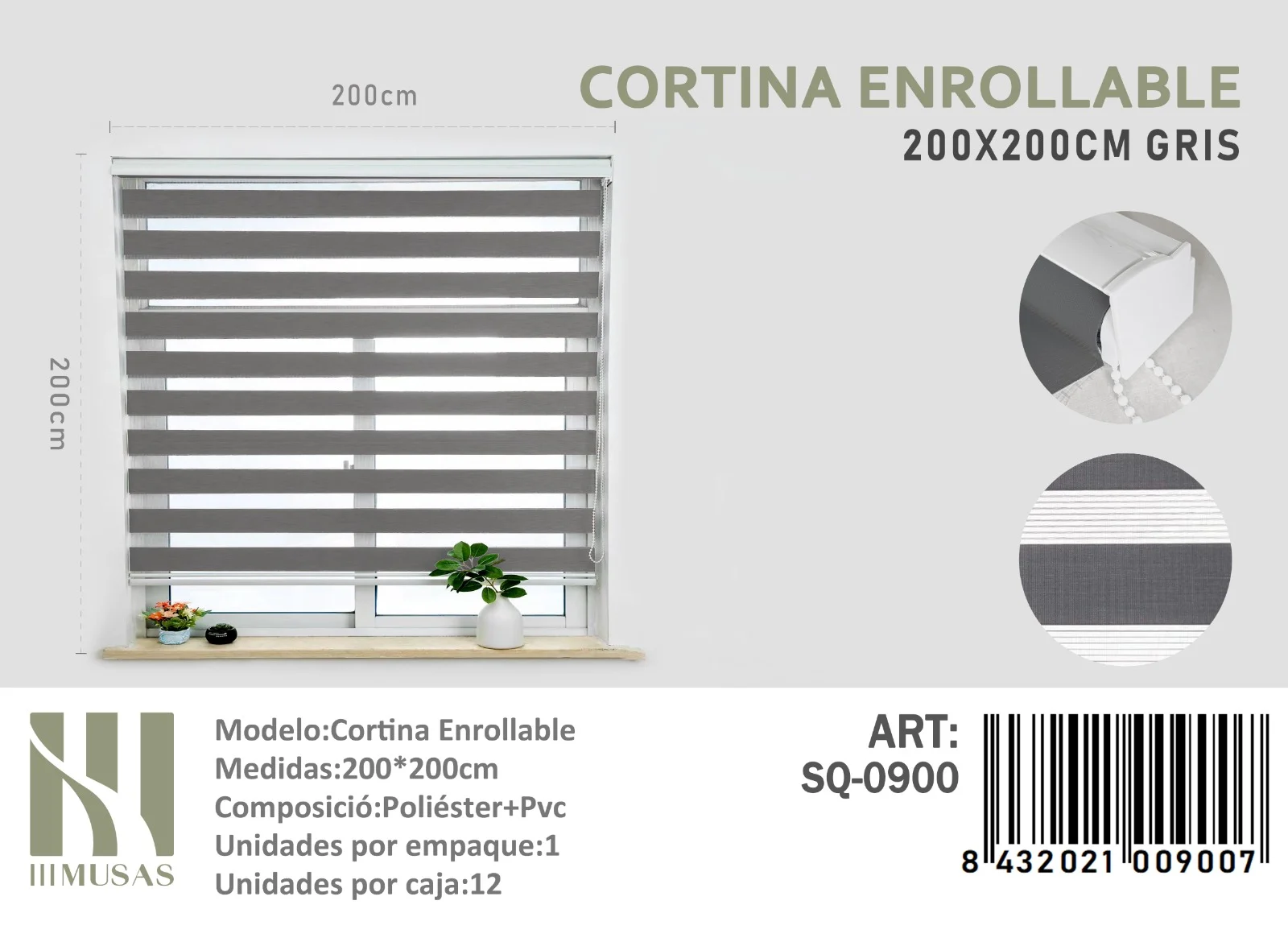 Portada » Tienda » Cortina Roller Duo Lisa 200cm x 200cm Color Gris SQ-0900