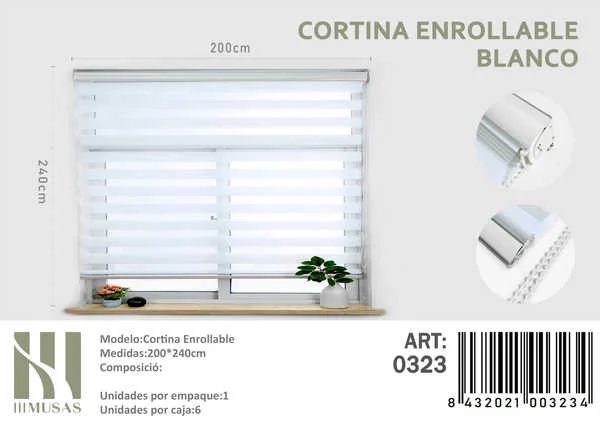 Cortina Roller Duo Lisa 200cm x 240cm Color Blanco 0323
