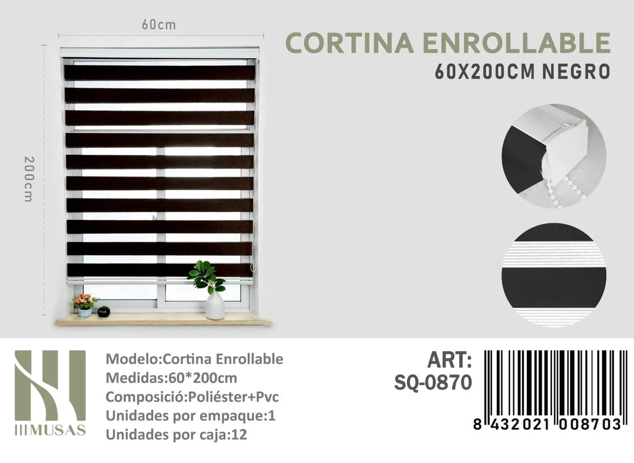 Portada » Tienda » Cortina Roller Duo Lisa 60cm x 200cm Color Negro SQ-0870