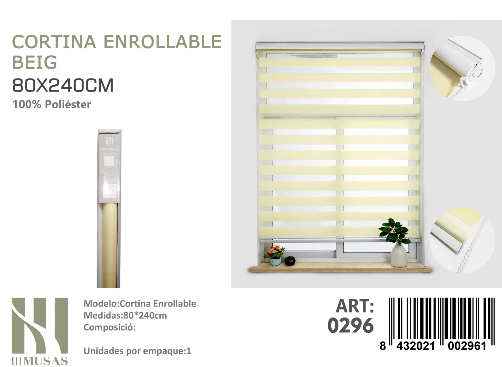 Cortina Roller Duo Lisa 80cm x 240cm Color Beige 0296