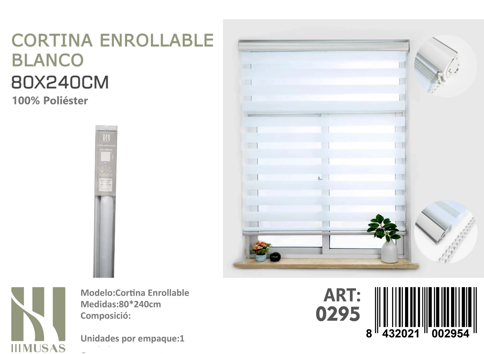 Cortina Roller Duo Lisa 80cm x 240cm Color Blanco 0295