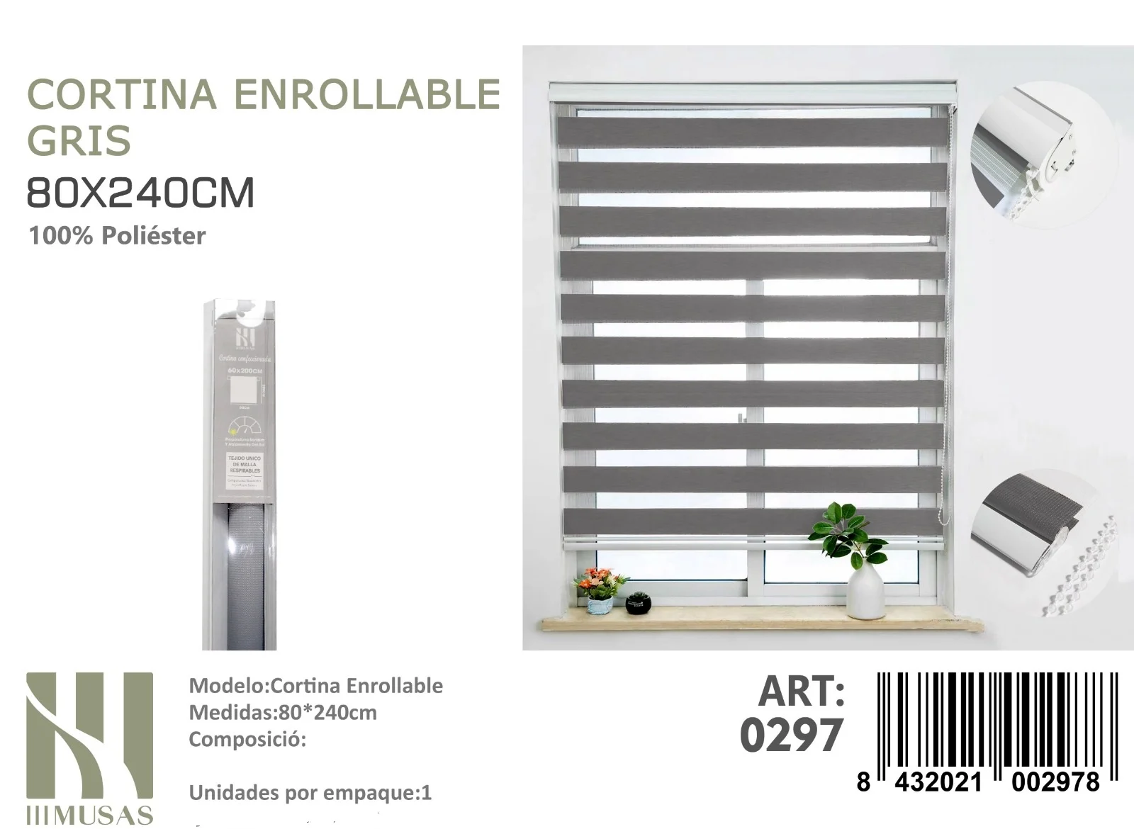 Cortina Roller Duo Lisa 80cm x 240cm Color Gris 0297