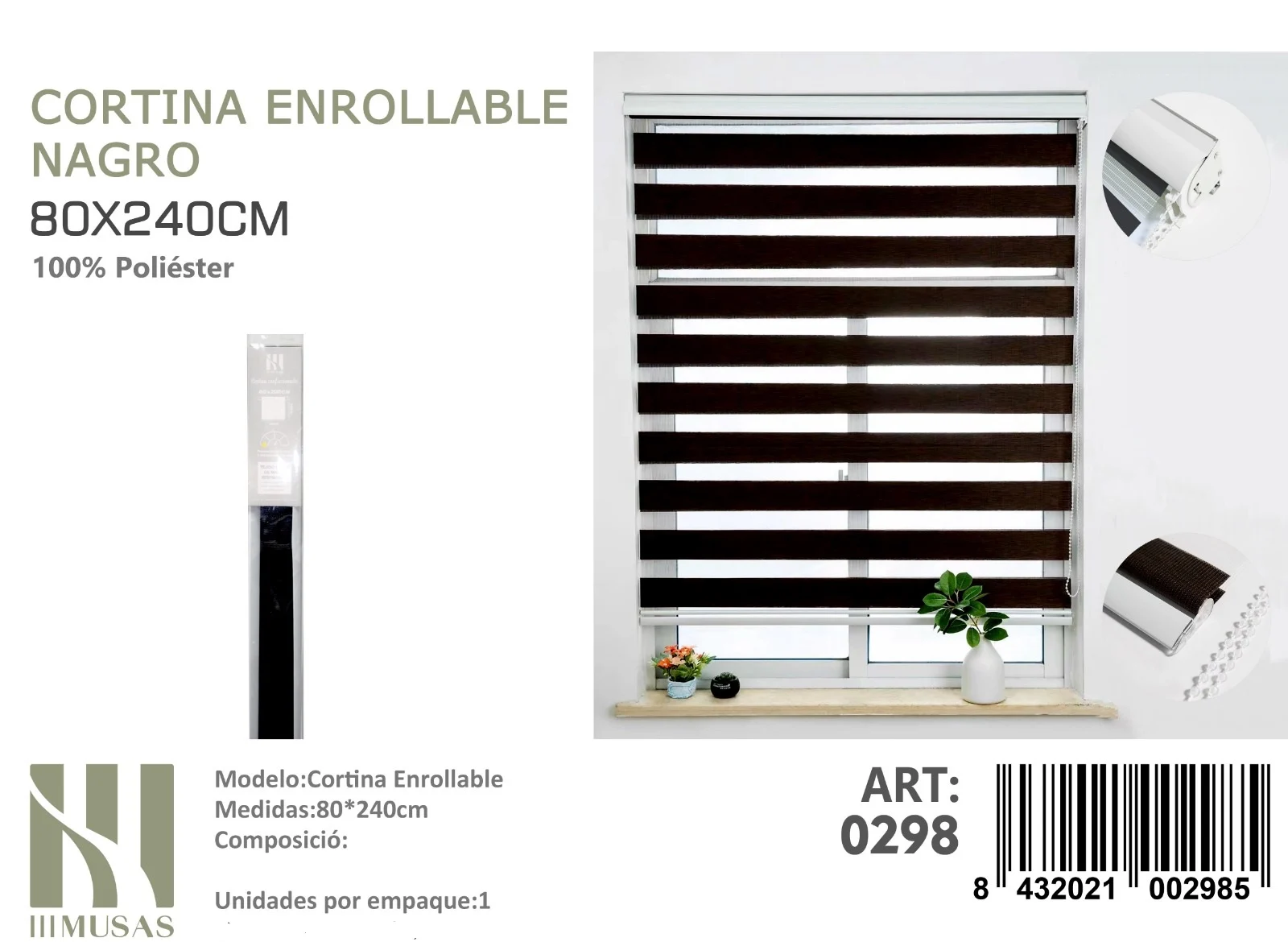 Cortina Roller Duo Lisa 80cm x 240cm Color Negro 0298