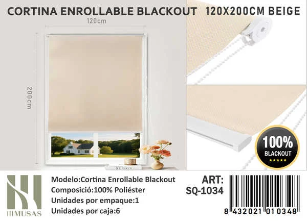 Cortinas Roller Blackout 120cm x 200cm Beige SQ-1034