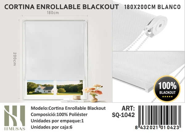 Cortinas Roller Blackout 180cm x 200cm Blanco SQ-1042