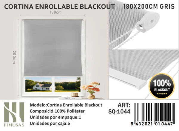Cortinas Roller Blackout 180cm x 200cm Gris SQ-1044