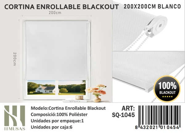Cortinas Roller Blackout 200cm x 200cm Blanco SQ-1045