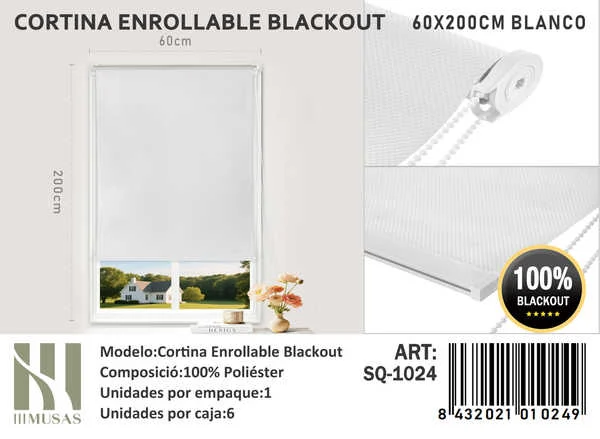 Cortinas Roller Blackout 60cm x 200cm Blanco SQ-1024