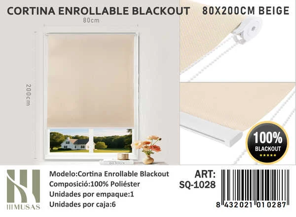 Portada » Tienda » Cortinas Roller Blackout 80cm x 200cm Beige SQ-1028