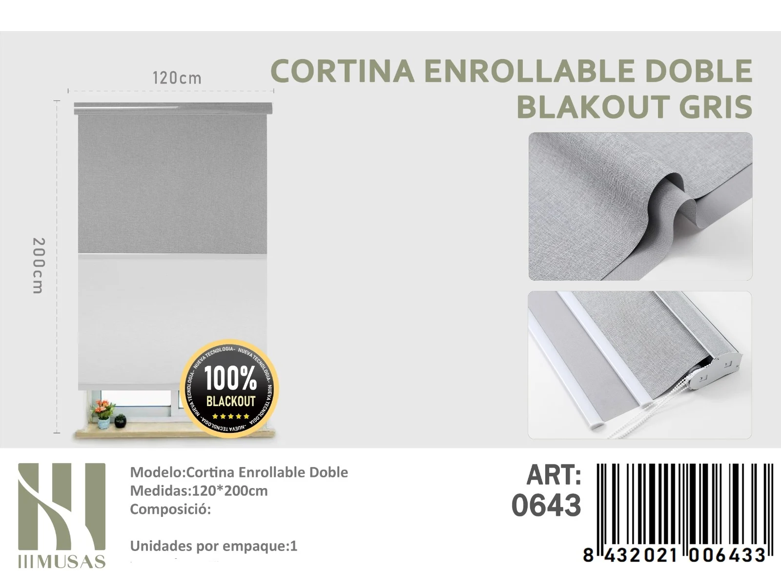 Cortinas Roller Blackout Doble Jaspeada 120cm x 200cm Gris 0643