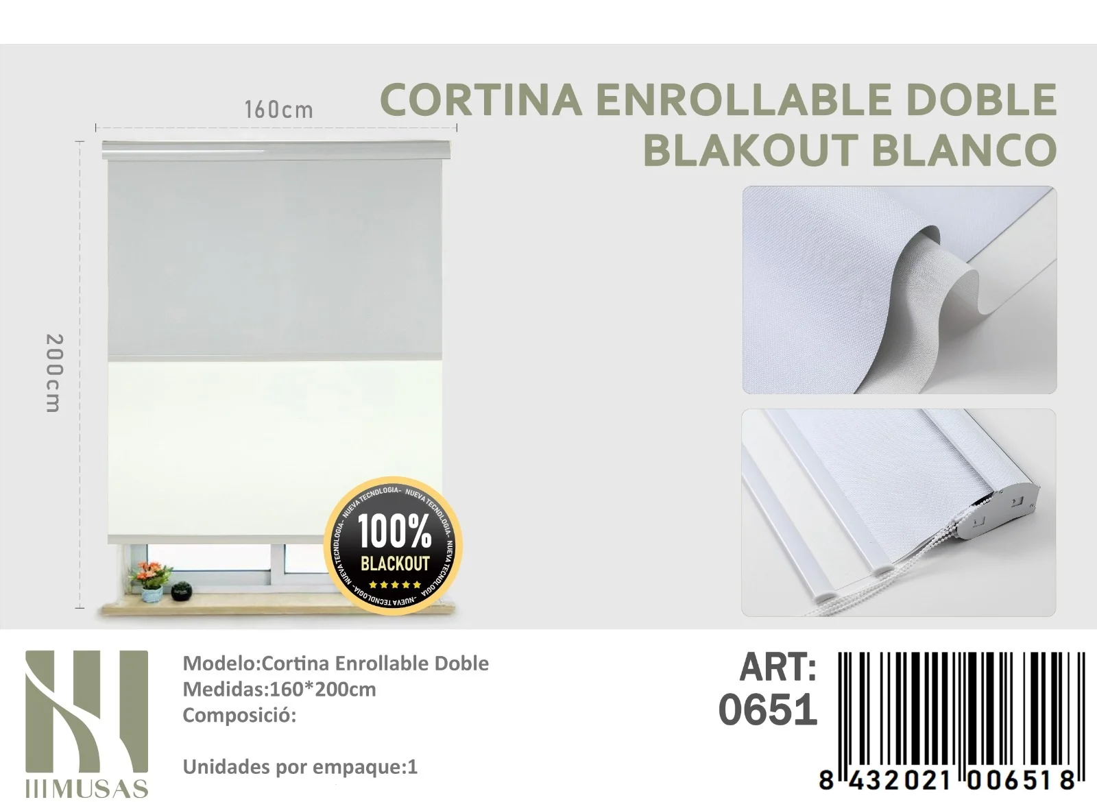 Cortinas Roller Blackout Doble Jaspeada 150cm x 200cm Blanco 0648