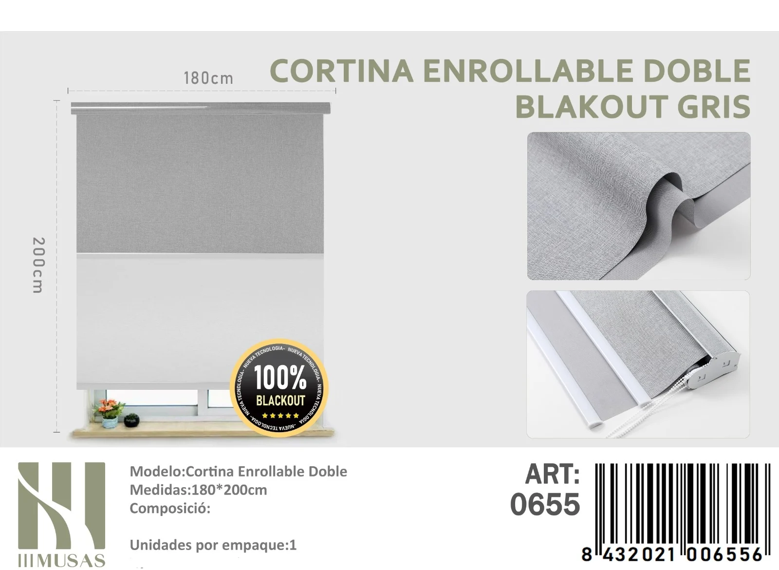 1 x Cortina roller Blackout + Visillo / 1 x Accesorios de instalacion