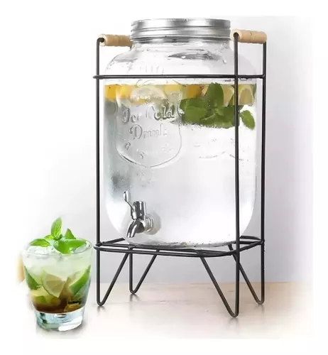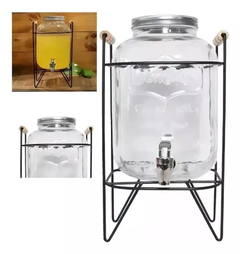 Dispensador De Bebidas De Vidrio 5l Soporte Metal Con Asas