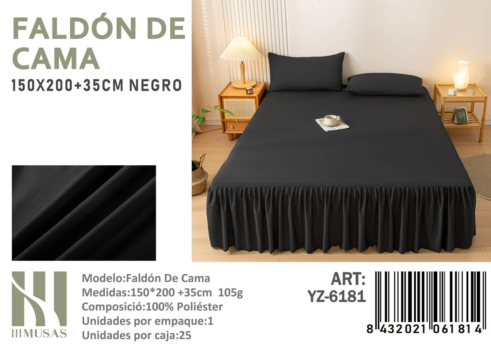 Faldon para cama 2 plazas Color Negro