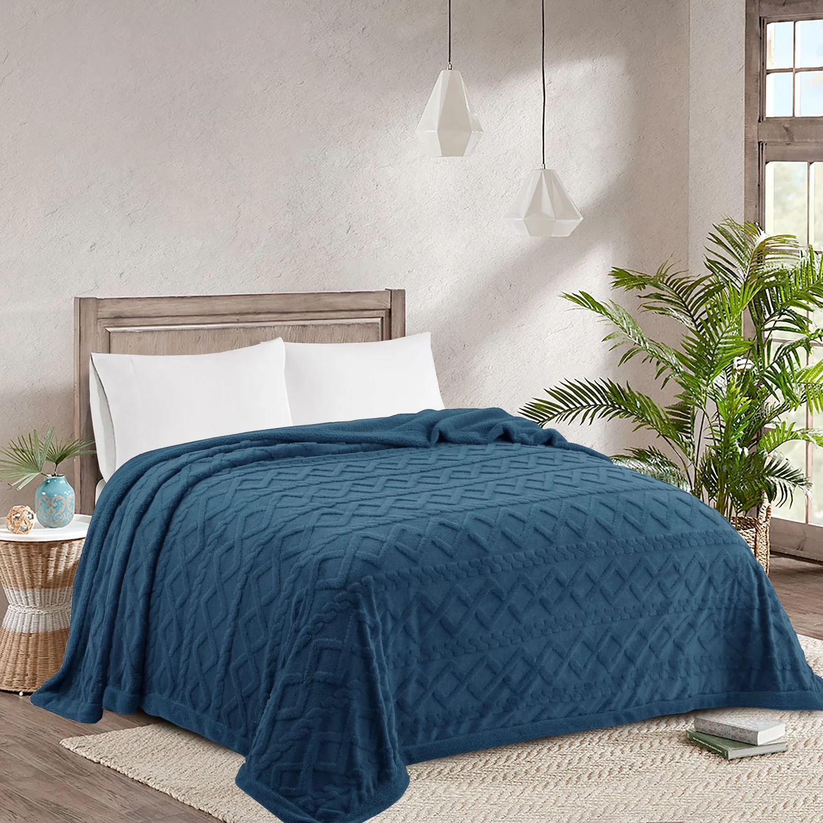 Frazadas Sherpa Texturizada con chiporro King Color Azul Marino