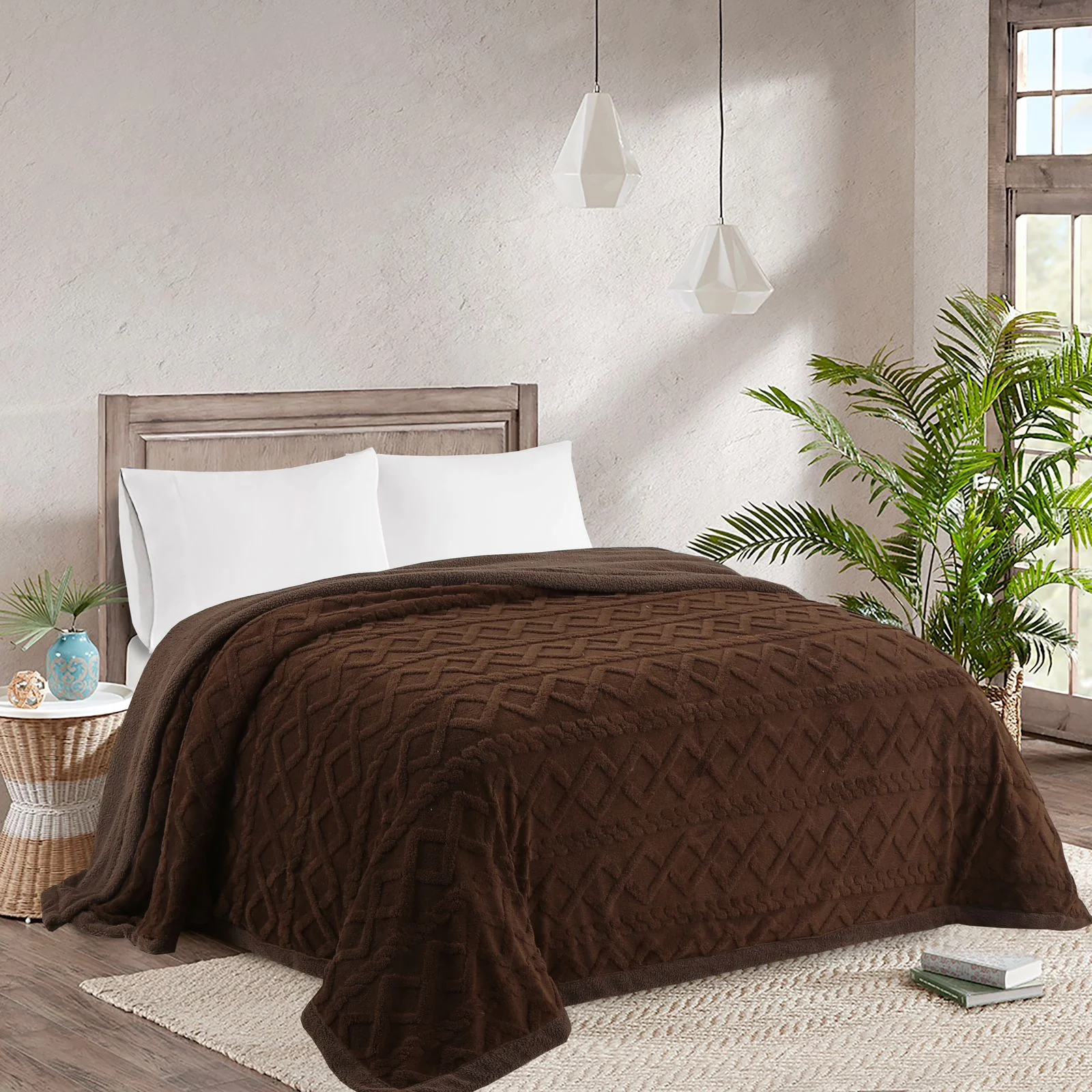 Frazadas Sherpa Texturizada con chiporro King Color Cafe