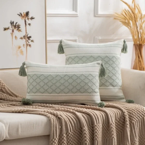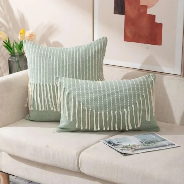 Fundas de Cojin con detalles en flecos verde