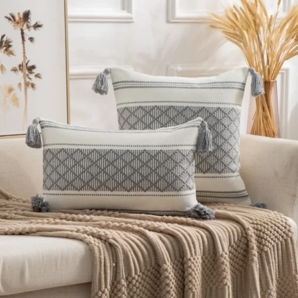 Fundas de Cojin con detalles en flecos gris