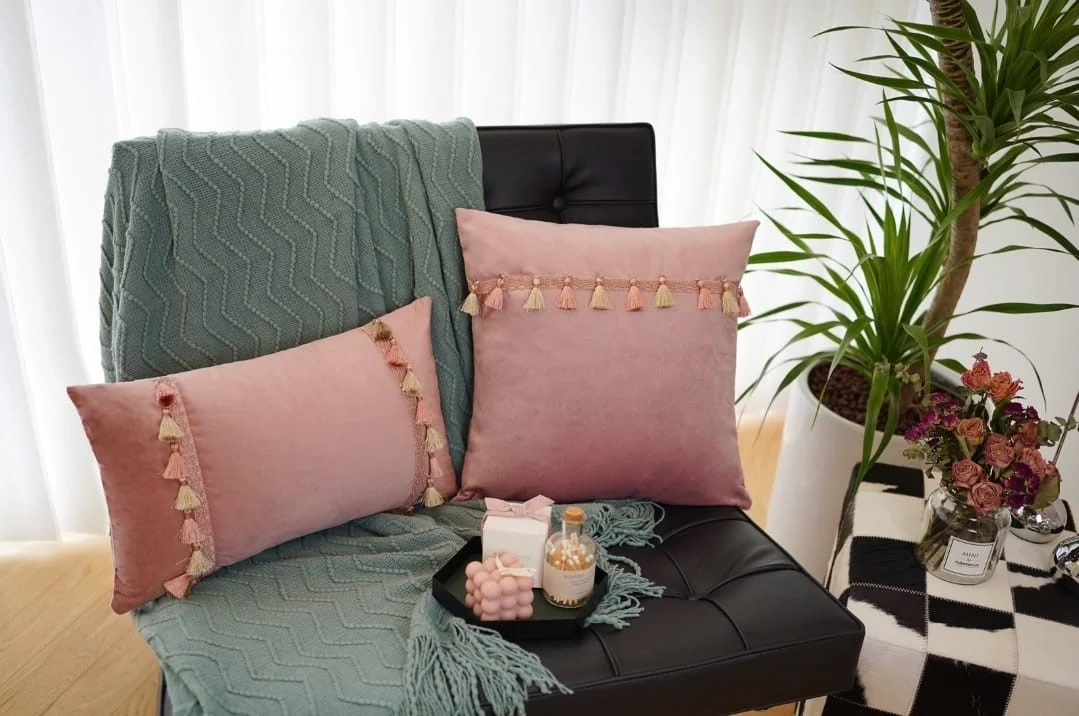 Fundas de Cojin Velvet con Borlas palo de rosa