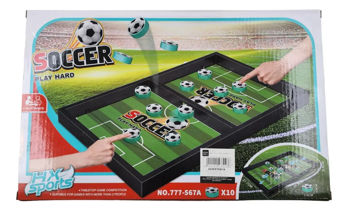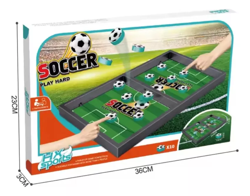 Desafía a tus amigos y demuestra tus habilidades con nuestro espectacular mini futbol de mesa, con su mecánica simple pero divertida, es el juguete perfecto para compartir con tus amigos y familia, los discos simulan la pelota en el campo de juego, lanza los discos con el elástico en tu mitad de la cancha hacia el centro, anota tantos goles como puedas y conviértete en el mejor. La duración promedio del producto puede acortarse o alargarse de acuerdo al uso que le dé el usuario.