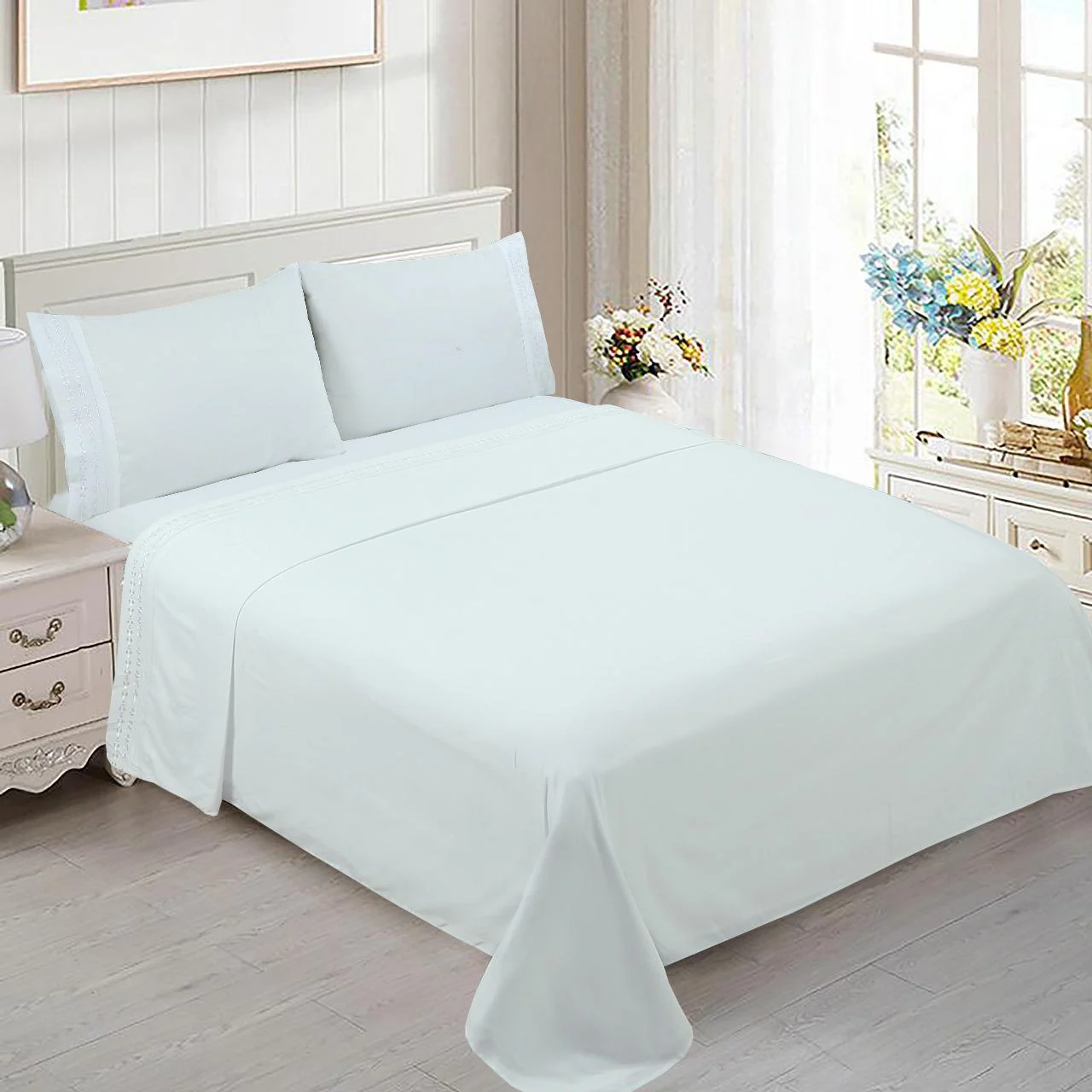 Juego de sabanas de algodon bordado super king color blanco