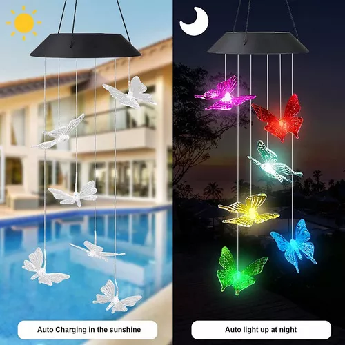 Transforma cualquier espacio en un encantador refugio con nuestras Lámparas de Techo Modernas Campana de Viento Solar LED Mariposa. Este elegante accesorio de iluminación no solo ofrece una fusión de funcionalidad y belleza, sino que también es una solución sostenible gracias a su panel solar. Durante el día, absorbe la luz solar, convirtiéndola en energía eléctrica que se almacena en la batería recargable de iones de litio, permitiendo iluminar su entorno por 6 a 8 horas con una sola carga. Con un tiempo de carga de 8 a 12 horas bajo la luz solar directa, esta lámpara es perfecta para decorar jardines, patios, o cualquier área exterior.