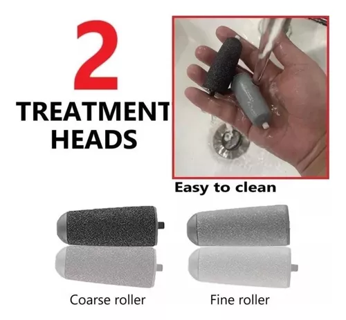 La almohadilla incluye 2 cabezales: un rodillo fino para pulir y cuidar el día a día, y un rodillo grueso para alisar los callos más rebeldes y la piel muerta.