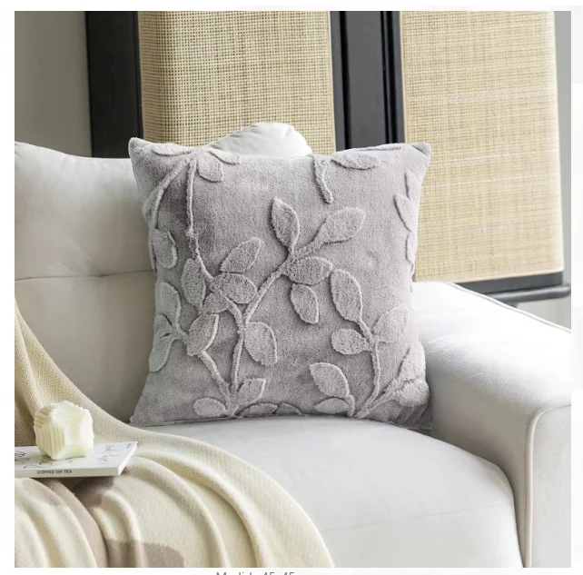 Pack de 2 fundas cojin velvet hojas color gris claro
