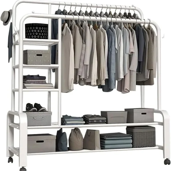 - Filas dobles de vigas: doble espacio de almacenamiento, doble fila de barras para ropa, almacenamiento de ropa de gran capacidad, doble colgado de ropa, puede colgar más de 80 piezas de ropa.