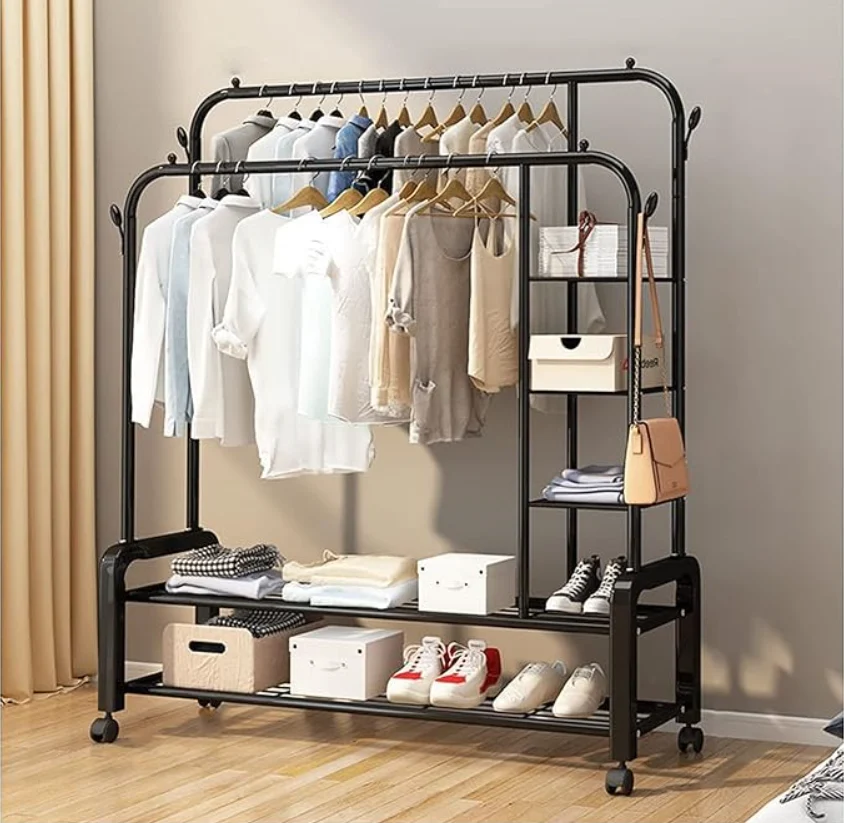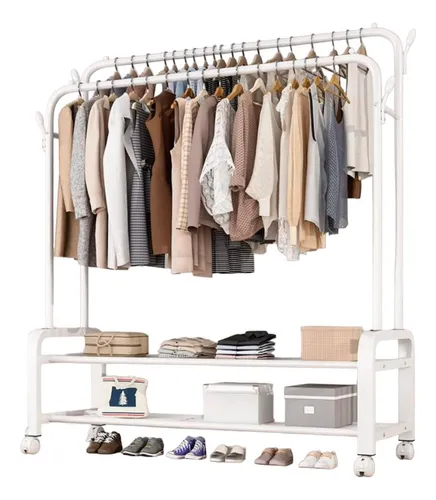 Perchero Metalico 58 kilos Doble Barra Closet Exhibicion Color Negro