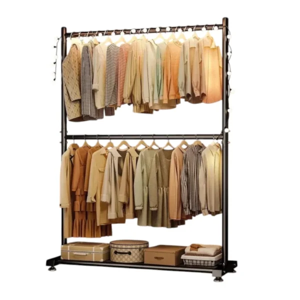 - Almacenamiento de doble capa: se pueden colocar filas dobles de barras para ropa en la parte inferior, almacenamiento razonable, utilización del espacio, cajas de almacenamiento y zapatos.