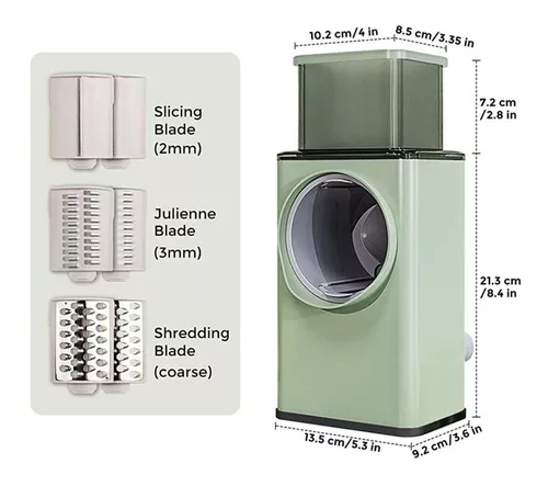De corte eficiente: Cuchillas de corte de acero inoxidable 304 rotativas afiladas con superficie de corte de tambor tridimensional y mango mejorado, lo que hace que el corte sea 20 veces más rápido que otras trituradoras de queso.